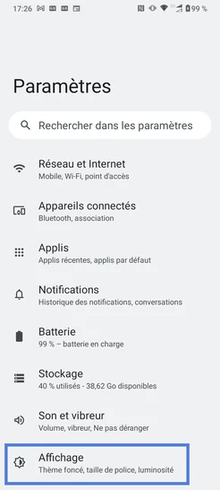 Étape 2 : Sélectionnez Paramètres.