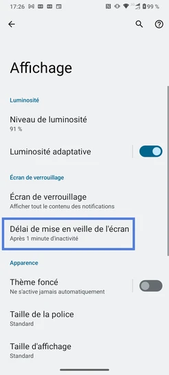 Étape 4 : Sélectionnez Délai de mise en veille de l'écran.