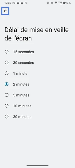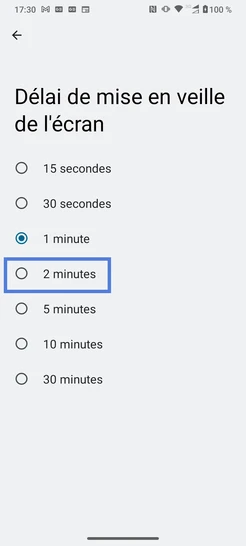 Étape 7 : Le délai de mise en veille est pris en compte.