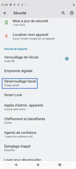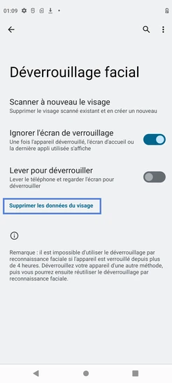pour votre Motorola Moto G62 5G ou Modifier le téléphone sélectionnéDésactiver la reconnaissance faciale