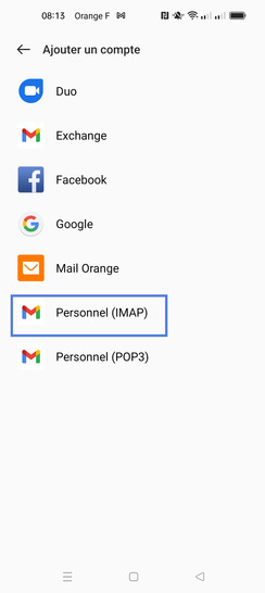pour votre Oppo Reno 4 pro 5G ou Modifier le téléphone sélectionnéConfigurer une boite mail