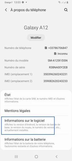 pour votre Samsung Galaxy A12 ou Modifier le téléphone sélectionnéAfficher la version logicielle