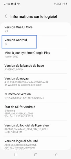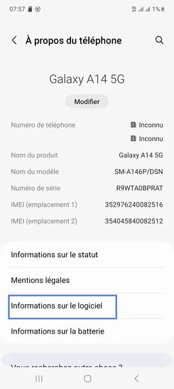 pour votre Samsung Galaxy A14 5G ou Modifier le téléphone sélectionnéAfficher la version logicielle