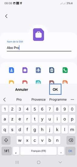 pour votre Samsung Galaxy A15 5G ou Modifier le téléphone sélectionnéNommer une carte Sim