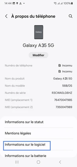 pour votre Samsung Galaxy A35 5G ou Modifier le téléphone sélectionnéAfficher la version logicielle