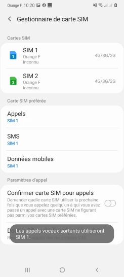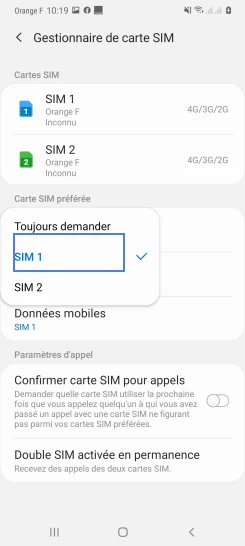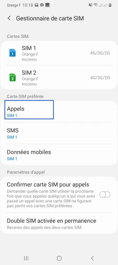 pour votre Samsung Galaxy A51 5G ou Modifier le téléphone sélectionnéChoisir la carte SIM pour les appels