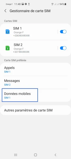 pour votre Samsung Galaxy A52 5G ou Modifier le téléphone sélectionnéChoisir la carte SIM pour les données mobile