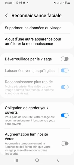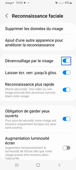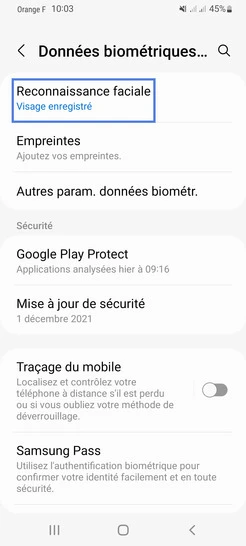pour votre Samsung Galaxy A53 5G ou Modifier le téléphone sélectionnéDésactiver la reconnaissance faciale