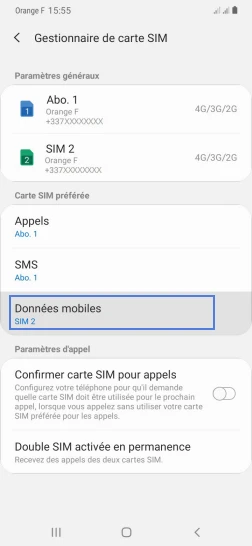pour votre Samsung Galaxy A70 ou Modifier le téléphone sélectionnéChoisir la carte SIM pour les données mobile