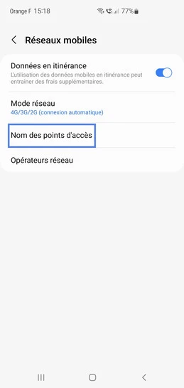 pour votre Samsung Galaxy Note 10 Lite ou Modifier le téléphone sélectionnéRestaurer le point d’accès internet