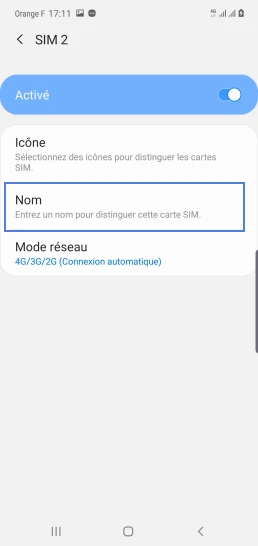 pour votre Samsung Galaxy Note 10 ou Modifier le téléphone sélectionnéNommer une carte Sim