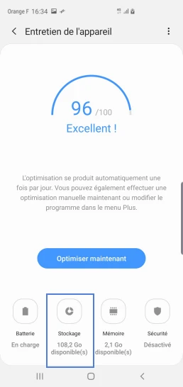 pour votre Samsung Galaxy S10 5G ou Modifier le téléphone sélectionnéOptimiser la mémoire