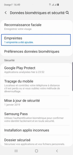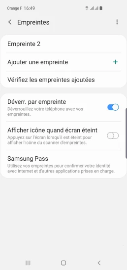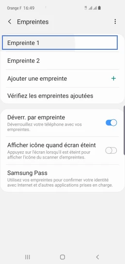 Pour modifier une empreinte existante, vous devez connaitre le code PIN, le schéma de déverrouillage ou mot de passe de secours choisi lors de l'enregistrement de la première empreinte.
