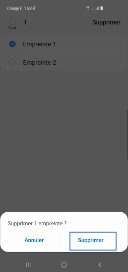 pour votre Samsung Galaxy S10 5G ou Modifier le téléphone sélectionnéSupprimer une empreinte digitale