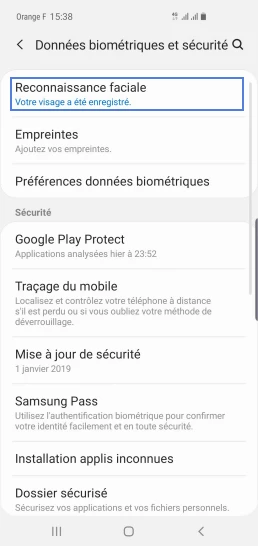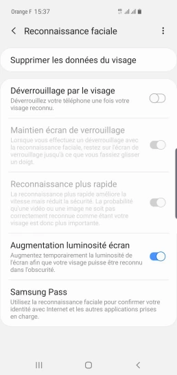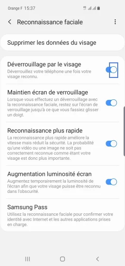 pour votre Samsung Galaxy S10+ ou Modifier le téléphone sélectionnéDésactiver la reconnaissance faciale