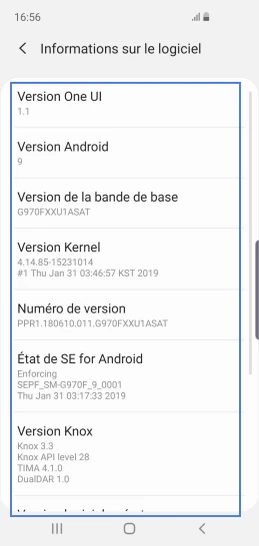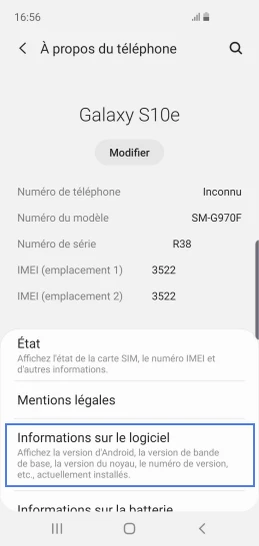 pour votre Samsung Galaxy S10e ou Modifier le téléphone sélectionnéAfficher la version logicielle