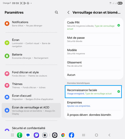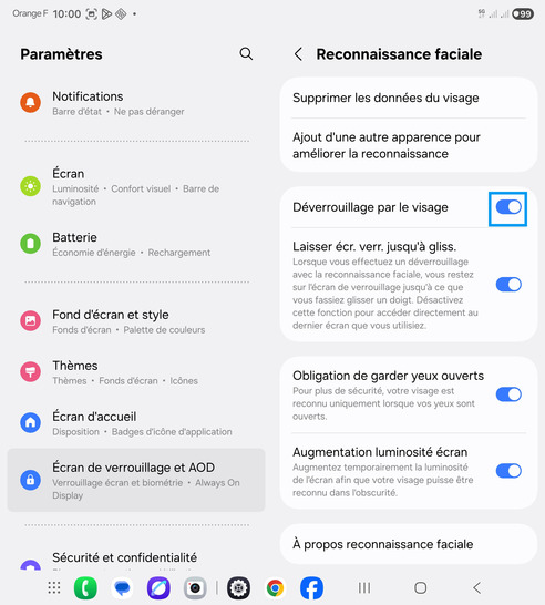 pour votre Samsung Galaxy Z Fold7 5G ou Modifier le téléphone sélectionnéDésactiver la reconnaissance faciale