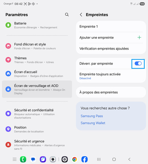 pour votre Samsung Galaxy Z Fold7 5G ou Modifier le téléphone sélectionnéDésactiver le verrouillage écran par empreinte digitale