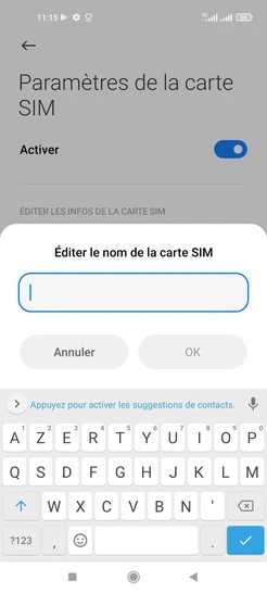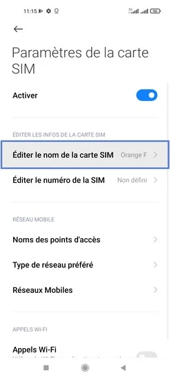 pour votre Xiaomi 11 lite 5G NE ou Modifier le téléphone sélectionnéNommer une carte Sim