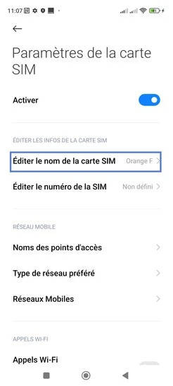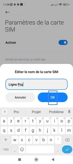 Nommer une carte Sim