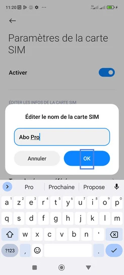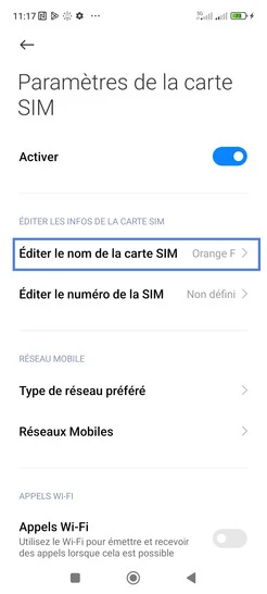 Nommer une carte Sim