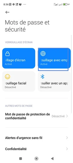 Pour supprimer une empreinte existante, vous devez connaître le code PIN, le schéma de déverrouillage ou mot de passe de secours choisi lors de l'enregistrement de la première empreinte.