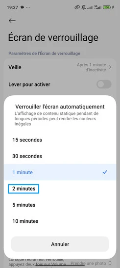 Choisissez un délai de mise en veille.