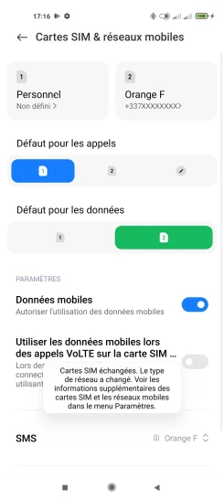 pour votre Xiaomi Mi 11 Ultra 5G ou Modifier le téléphone sélectionnéChoisir la carte SIM pour les données mobile
