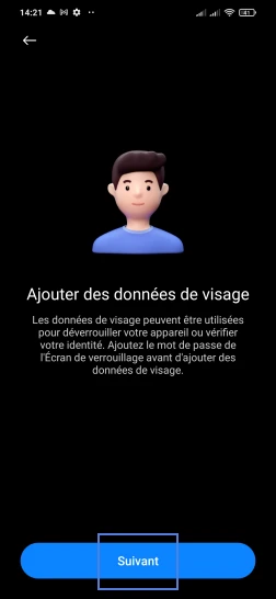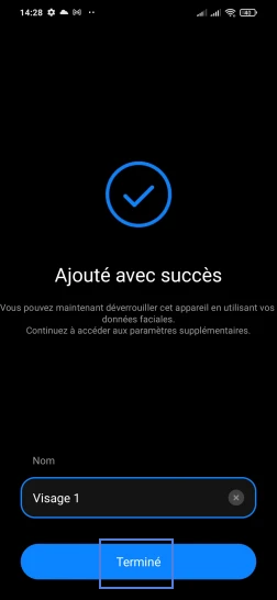ce mot de passe/PIN/schéma vous sera demandé au cas où la reconnaissance faciale ne serait pas reconnue.