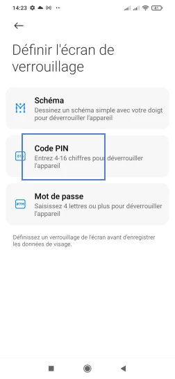 Choisissez-en un parmi les propositions. Dans le cadre de notre démonstration, allez sur Code PIN.