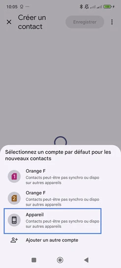 Définissez un compte sur lequel sera enregistré le contact saisi : dans notre exemple, Appareil.