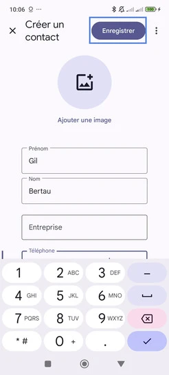 Saisissez les informations du contact puis validez-les avec Enregistrer.