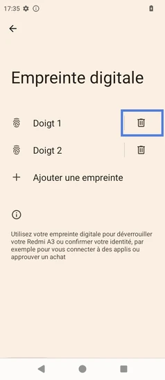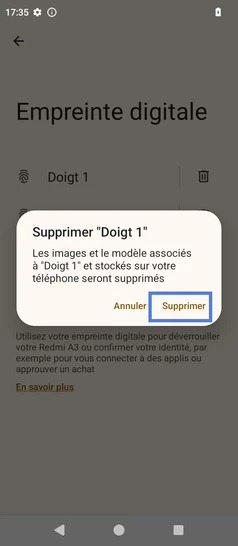 Supprimer une empreinte digitale