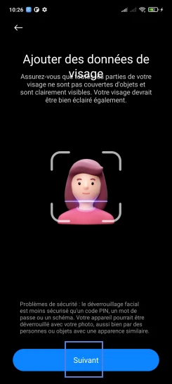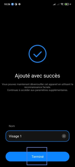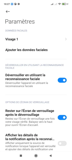 pour votre Xiaomi Redmi Note 10S ou Modifier le téléphone sélectionnéActiver la reconnaissance faciale