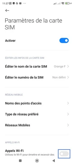 pour votre Xiaomi Redmi Note 10S ou Modifier le téléphone sélectionnéActiver les appels Wi-Fi