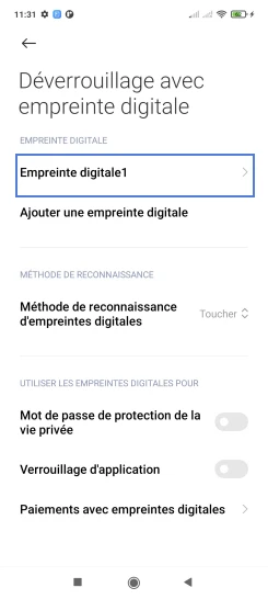 Pour désactiver le déverrouillage par empreinte, vous devez connaitre le code ou le mot de passe que vous avez créé lors de l'enregistrement de la première empreinte.Pour désactiver le déverrouillage du mobile par empreinte digitale, il est nécessaire de la supprimer.