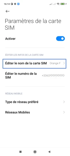 pour votre Xiaomi Redmi Note 10S ou Modifier le téléphone sélectionnéNommer une carte Sim
