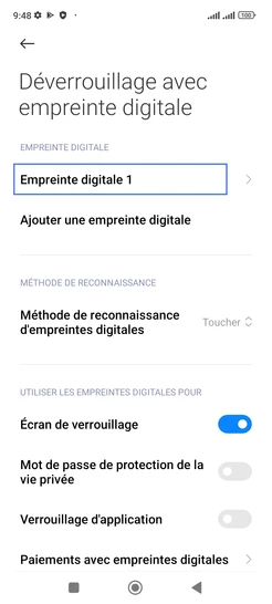 pour votre Xiaomi Redmi Note 11 ou Modifier le téléphone sélectionnéEnregistrer une empreinte digitale