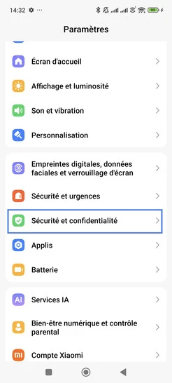 Étape 2 : Sélectionnez Sécurité et confidentialité.