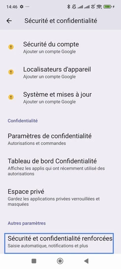 Étape 3 : Allez sur Sécurité et confidentialité renforcées.
