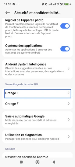 Activer le code PIN