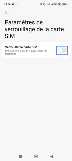 Étape 5 : Allez sur le bouton virtuel correspondant à Verrouiller la carte SIM, il glisse vers la droite lors de l'activation.Sur l'étape suivante : confirmez votre code PIN et validez avec OK.