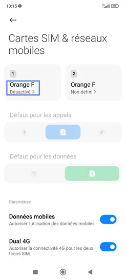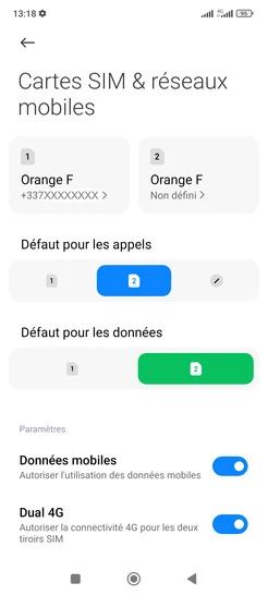 pour votre Xiaomi Redmi Note 13 4G ou Modifier le téléphone sélectionnéActiver le mode dual SIM