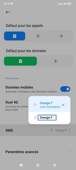 pour votre Xiaomi Redmi Note 13 4G ou Modifier le téléphone sélectionnéChoisir la carte SIM pour les SMS