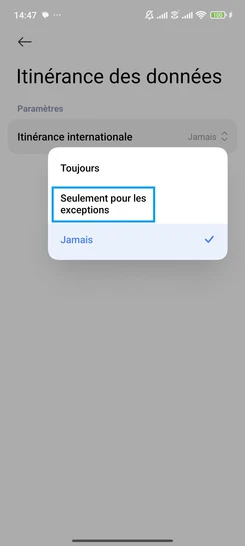pour votre Xiaomi Redmi Note 9 Pro ou Modifier le téléphone sélectionnéActiver les données mobile à l'étranger