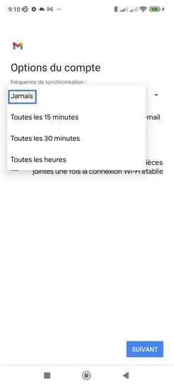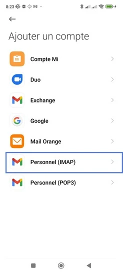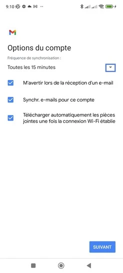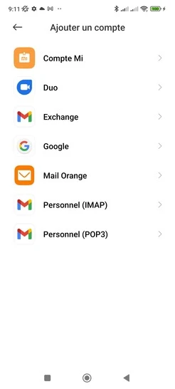 pour votre Xiaomi Redmi Note 9 Pro ou Modifier le téléphone sélectionnéConfigurer une boite mail